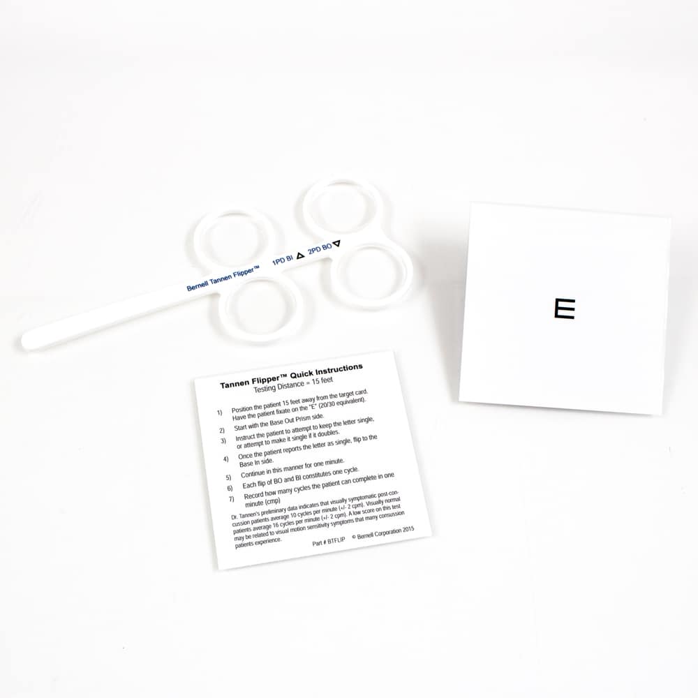 DFF (Distance Fusional Facility) viser sig ofte at være reduceret hos mange patienter efter hjernerystelse. Dr. Barry Tannen har udviklet en prismeflipper med 2PD Basis-ind (BI) på den ene side og 4PD Basis-ud (BU) på den anden.