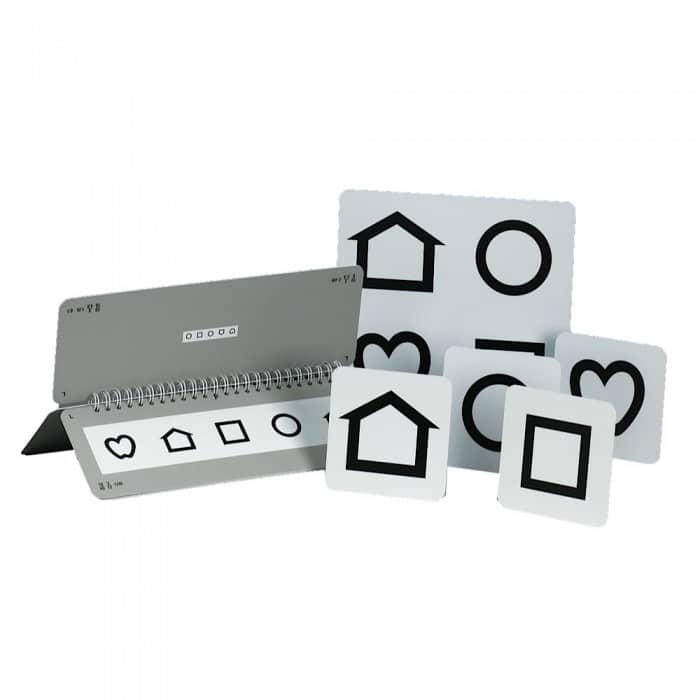 Testen er designet til amblyopiscreening og test af børn, der har vanskeligheder, når de testes med normale testkort. Baggrunden er grå med undtagelse af et hvidt rektangel med en afstand på 50 % omkring hver linje af symboler. Linjestørrelser fra 20/80 til 20/16 (6/24 til 6/4,8) ækvivalent, 0,25 til 1,25.