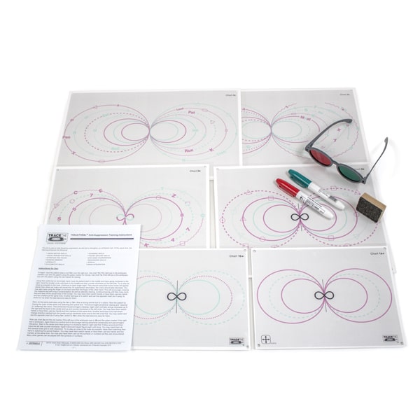 Tracethe8s™ Anti-Suppression Chart Set bruges til at hjælpe med at bryde undertrykkelse samt til at styrke et amblyopisk øje. Samtidig styrker træningen følgende: Visuel-motorik, Visuel-perceptionskompetence, Opmærksomhed og fokus, Arbejdshukommelse, Lateralitet, Oculomotorik, Scanningsfærdigheder, Figurgrundfærdigheder, Øjen-hånd-koordination, Sekventeringsfærdigheder, Tale, og hjerneintegration.